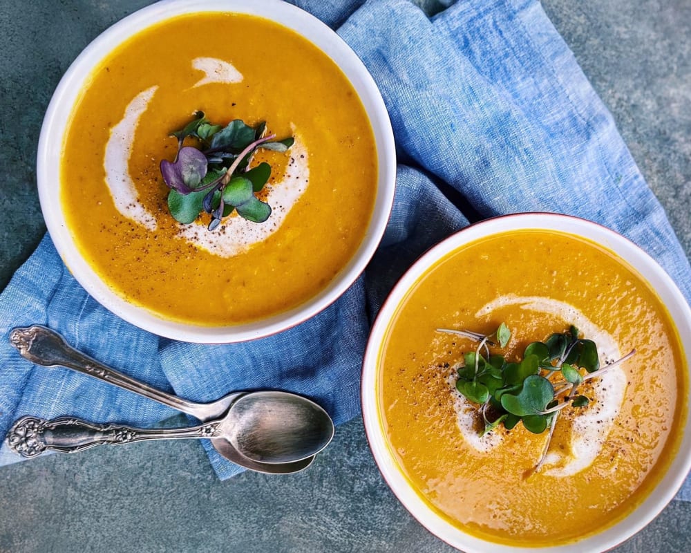 Sweet carrots and warming spices come together in this creamy coconut carrot soup, which is both comforting and nutrient-dense. Carrots are rich in beta-carotene, an antioxidant the body converts into vitamin A to support healthy skin renewal. Ginger, turmeric, and curry powder add depth of flavour along with anti-inflammatory compounds, while coconut milk provides healthy fats that help the body absorb fat-soluble nutrients. Blended until smooth and velvety, this nourishing soup is a cozy way to enjoy vegetables that support overall wellness and glowing skin.