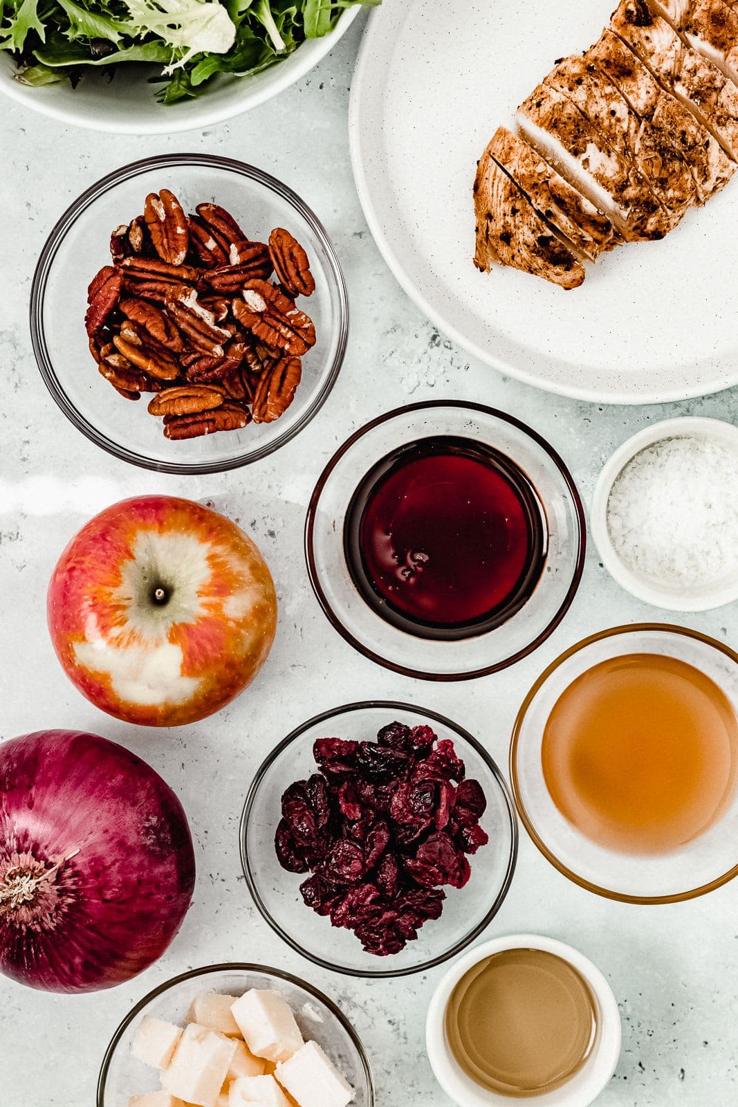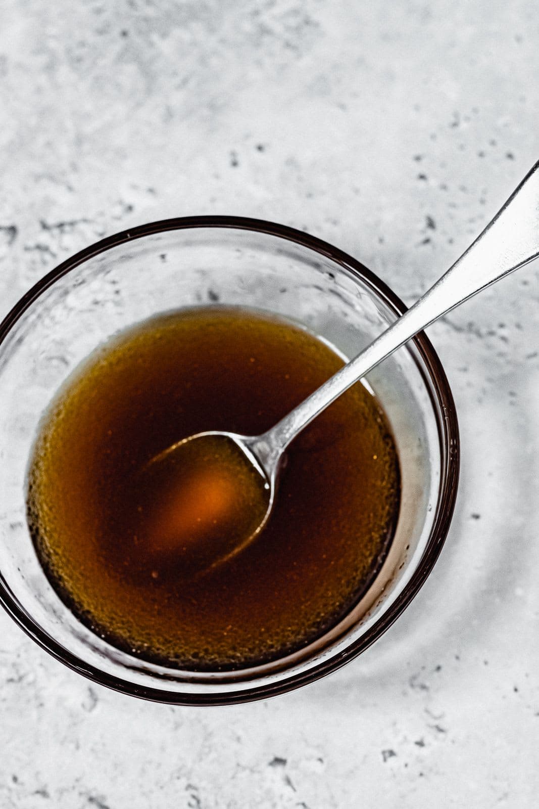 In a small bowl mix together the olive oil, maple syrup, apple cider vinegar and 1/4 tsp sea salt to make your dressing.