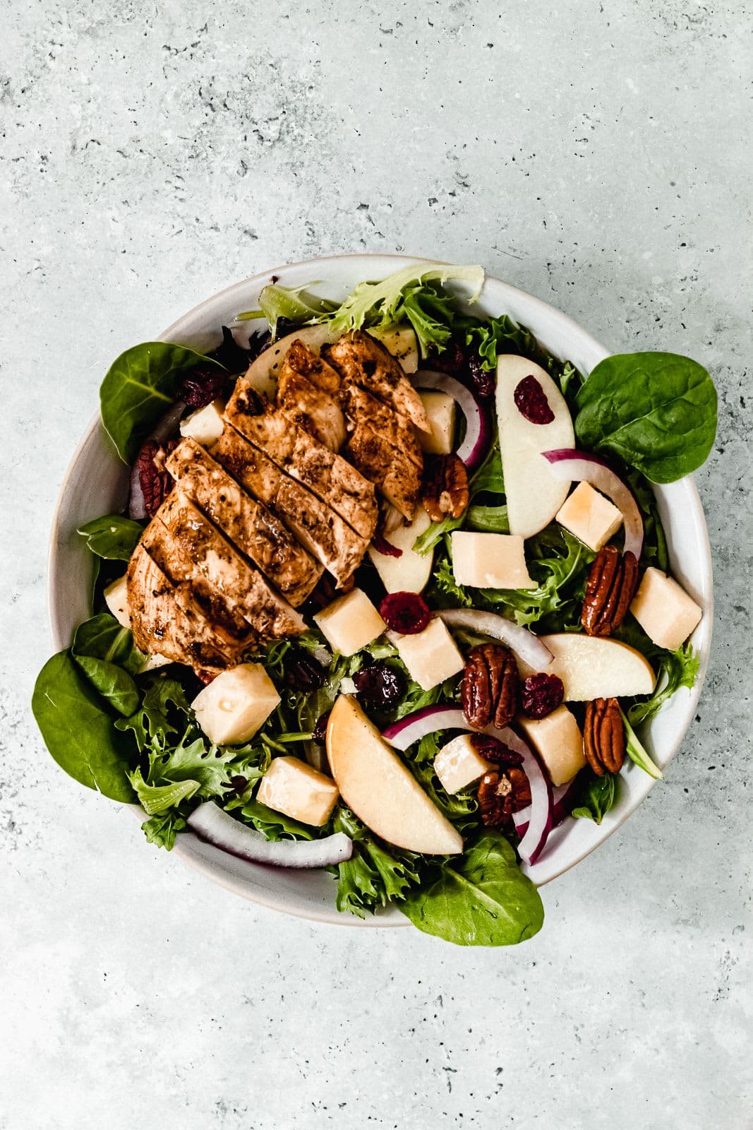 Substitutions: Make it vegetarian by replacing the chicken with chickpeas, tofu or tempeh. Make it dairy-free by omitting the cheddar or replacing it with plant-based cheese. Add more carbs by adding quinoa or rice.