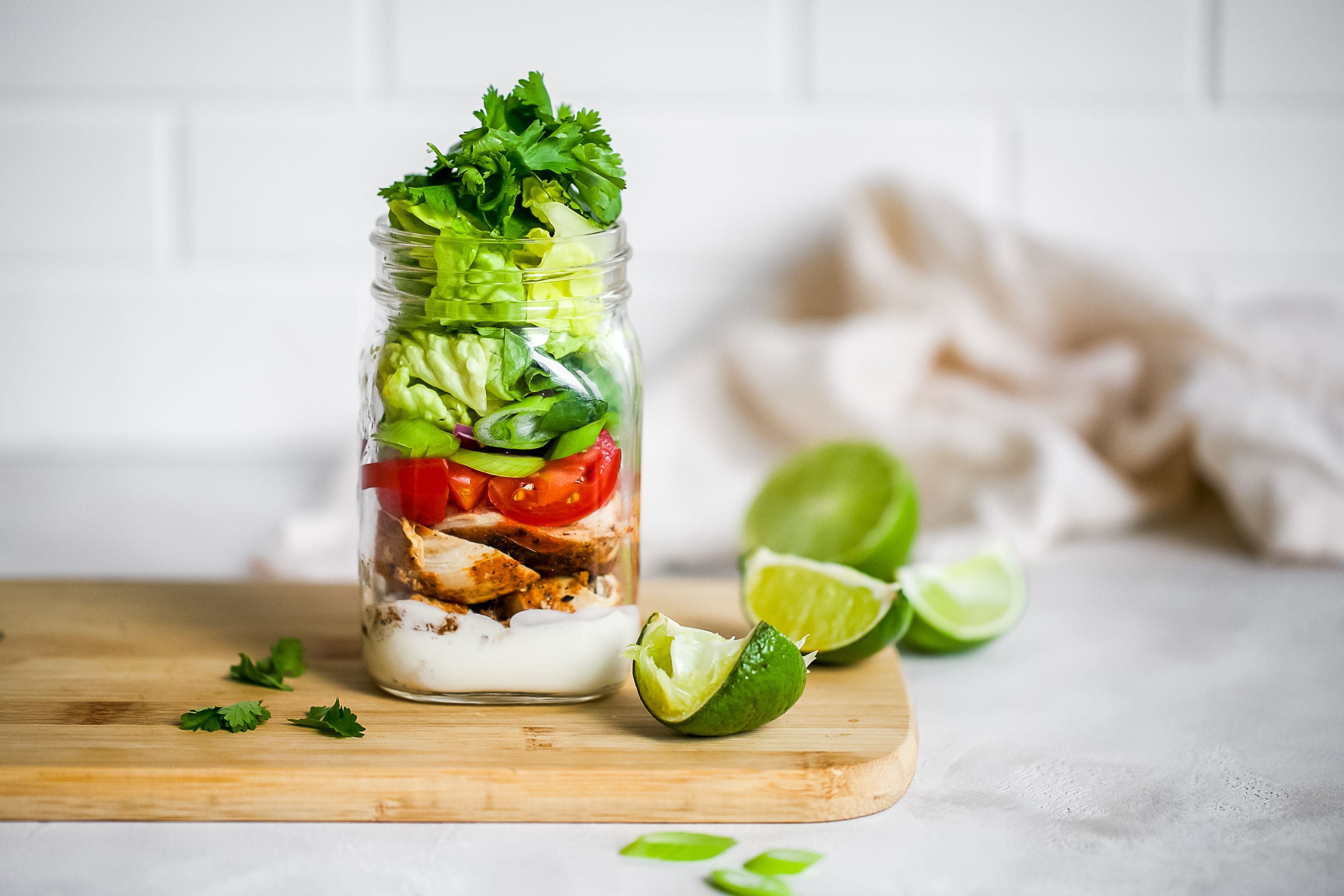 This easy and portable cajun chicken mason jar salad is perfect for a quick lunch or dinner. The best part is the dressing on the bottom won’t wilt the lettuce at the top, making it perfect to store in the fridge for up to 3 days.