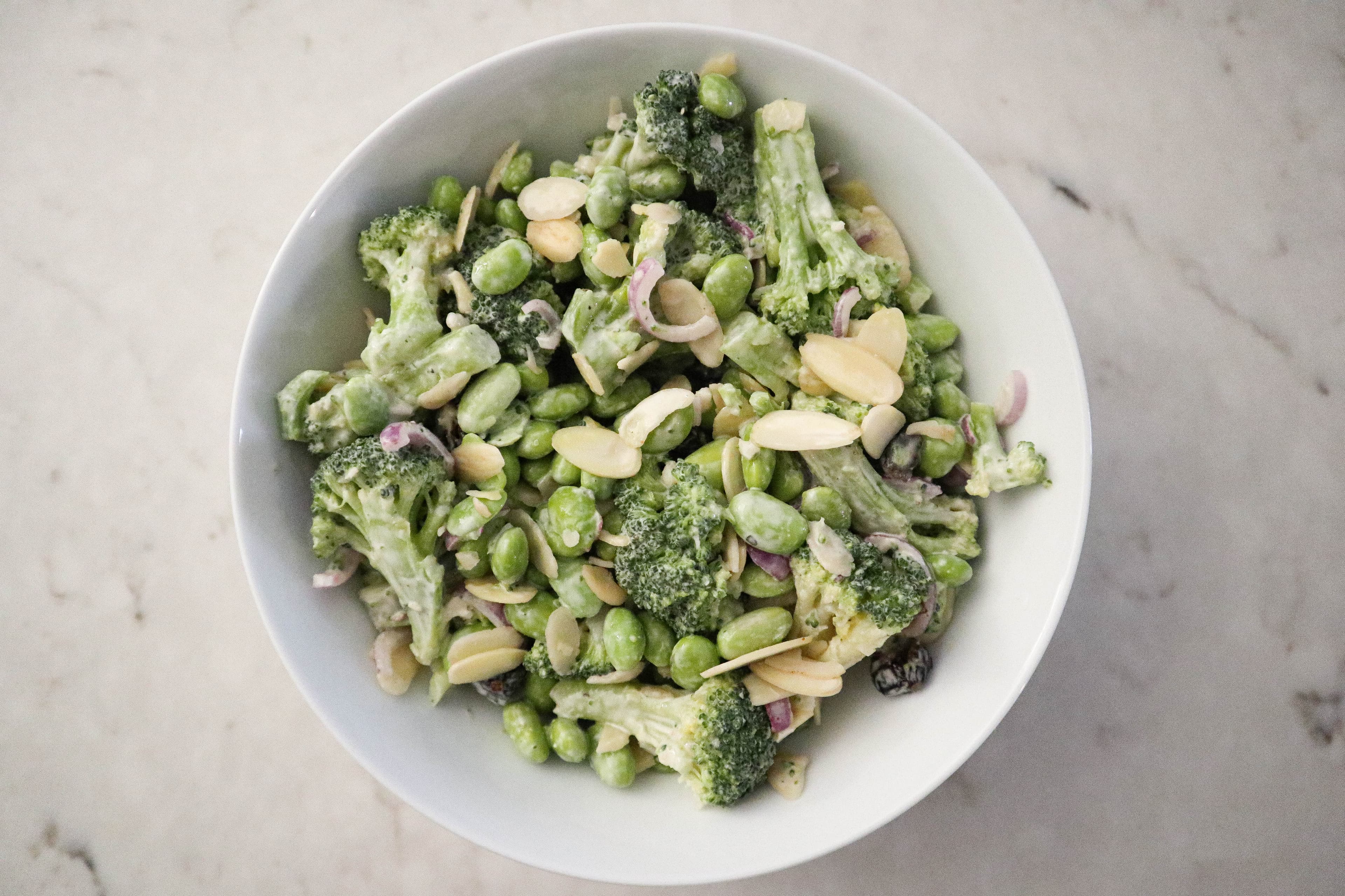 Combine the broccoli, edamame, onion and dried cranberries into a large bowl and toss so that all the ingredients are well mixed and set aside