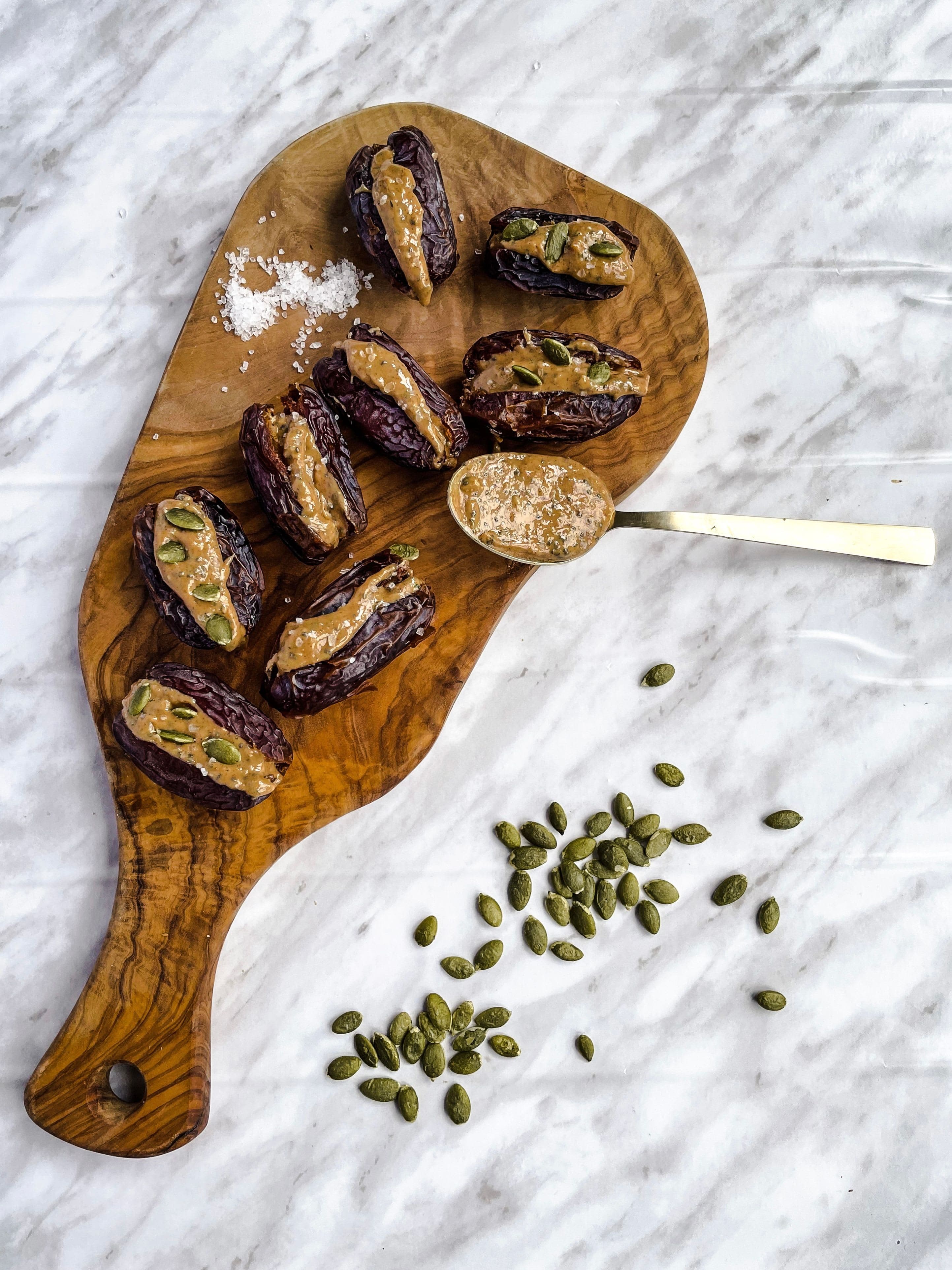 These stuffed dates with homemade nut and seed butter are the perfect snack for when those mid-afternoon sweet cravings hit! Dates are high in fiber and a source of prebiotics. Including naturally occurring prebiotics in food is the best way to support gut health and feed your gut microbiome. The combination of high fiber (from the dates and seeds) and healthy fats (from the peanut butter, hemp hearts and seeds) helps to slow down digestion and prevent blood sugar spikes. Best of all? These tasty treats are ready on the spot - no waiting or baking time required!