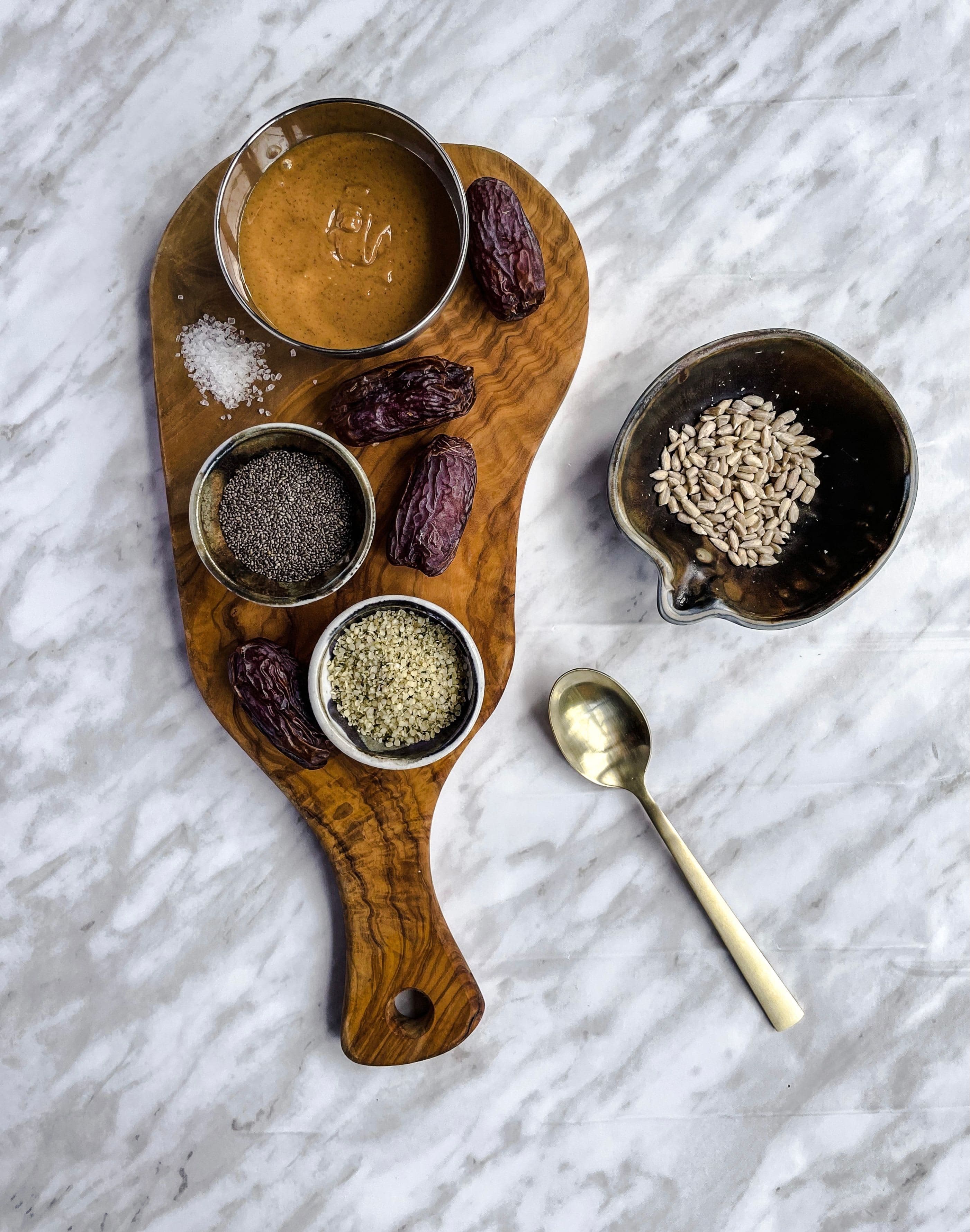 Fill each date with 1-2 tsp of seedy nut butter mixture.