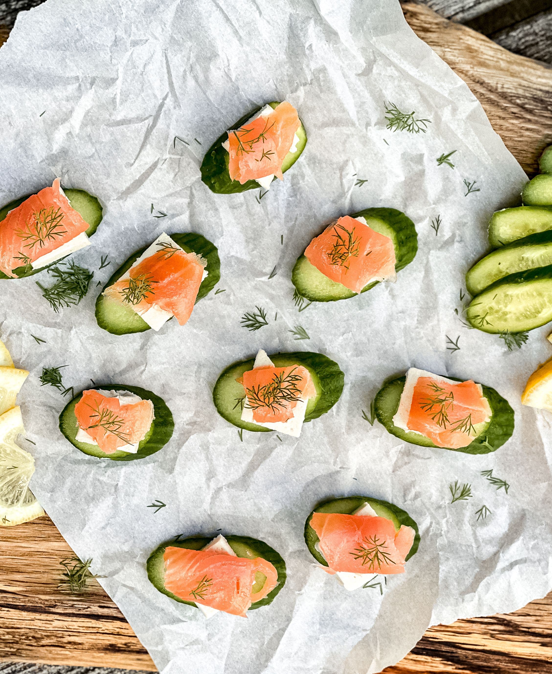 These Smoked Salmon Cucumber Bites are like biting into a smoked salmon bagel with all the cream cheese and dill, except the bagel is missing here--and you don’t really need it! The classic lox bagel has been flipped into a super easy appetizer with this recipe and it’s the simplest afternoon or evening snack. As a pescatarian, gluten-free and keto-friendly snack, this is an easy win for a diverse group of eaters.