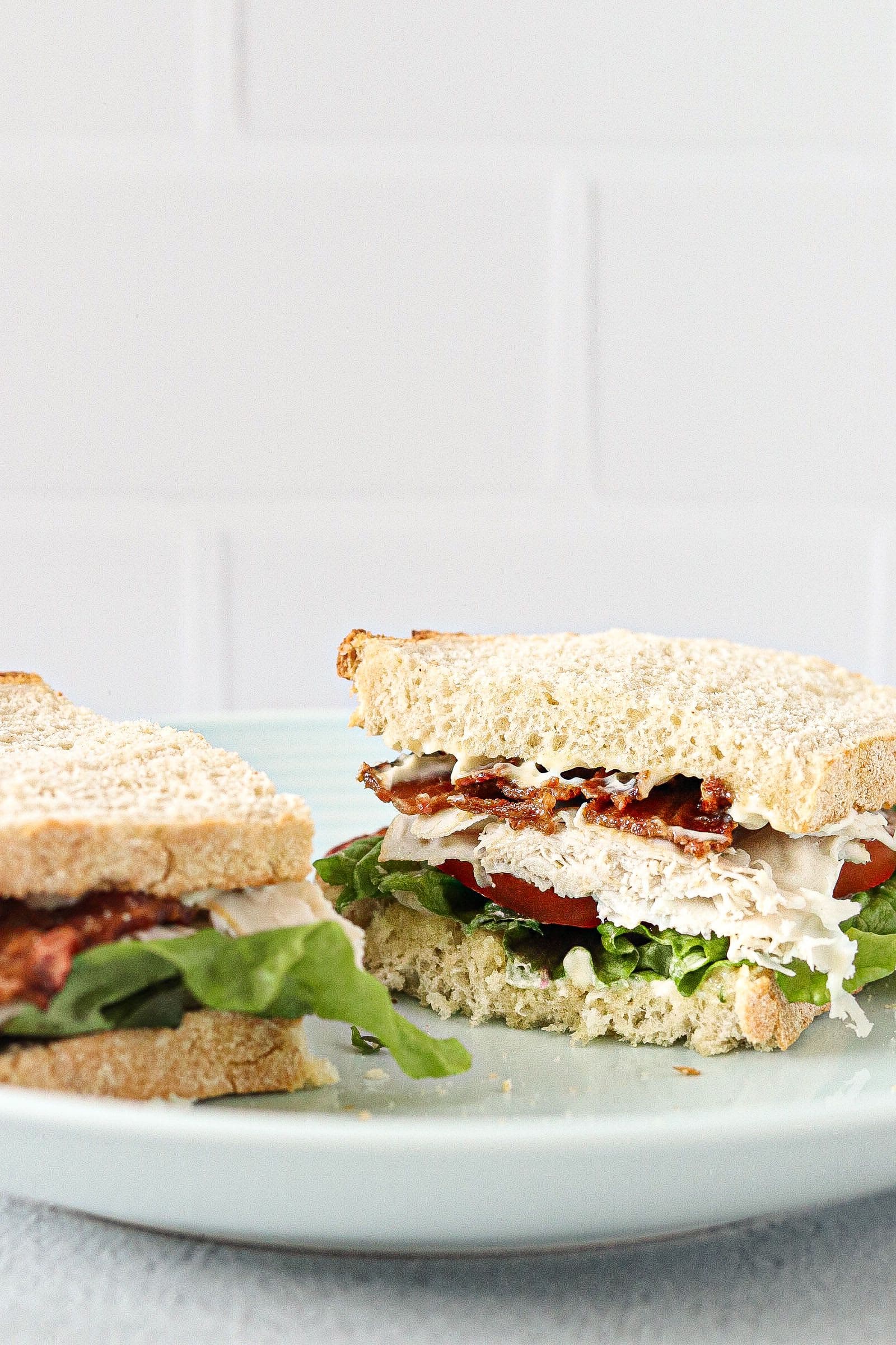 You can’t go wrong with a turkey BLT. There are many ways you can add the turkey in. You can have it thinly sliced, shaved or ask for thicker slices. It’s really up to you and your preference. There’s always a way to enjoy your favourite foods with a healthier twist. Choosing quality ingredients is the key. In this recipe, sourdough bread is used, which is easier on digestion. The cultures in a sourdough starter feed on gluten from the flour. Some people who are sensitive to gluten can typically tolerate sourdough bread. Also, choosing quality bacon, free from additives, is a healthier choice. And, the same can be said for the mayonnaise.